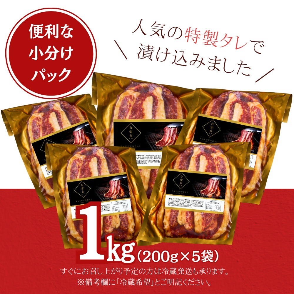 送料無料!【真空パック】 国産牛 タレ漬け薄切りカルビ 1kg(あっさりタレ付き)