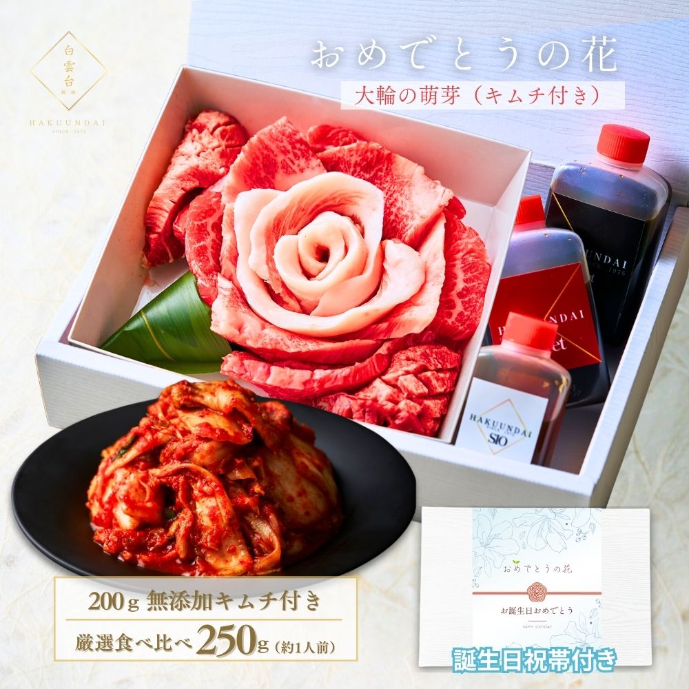 そんな大阪を代表する焼肉店の1つの白雲台が贈るお肉の花シリーズと白雲台の大人気商品のキムチがセットになった商品です。